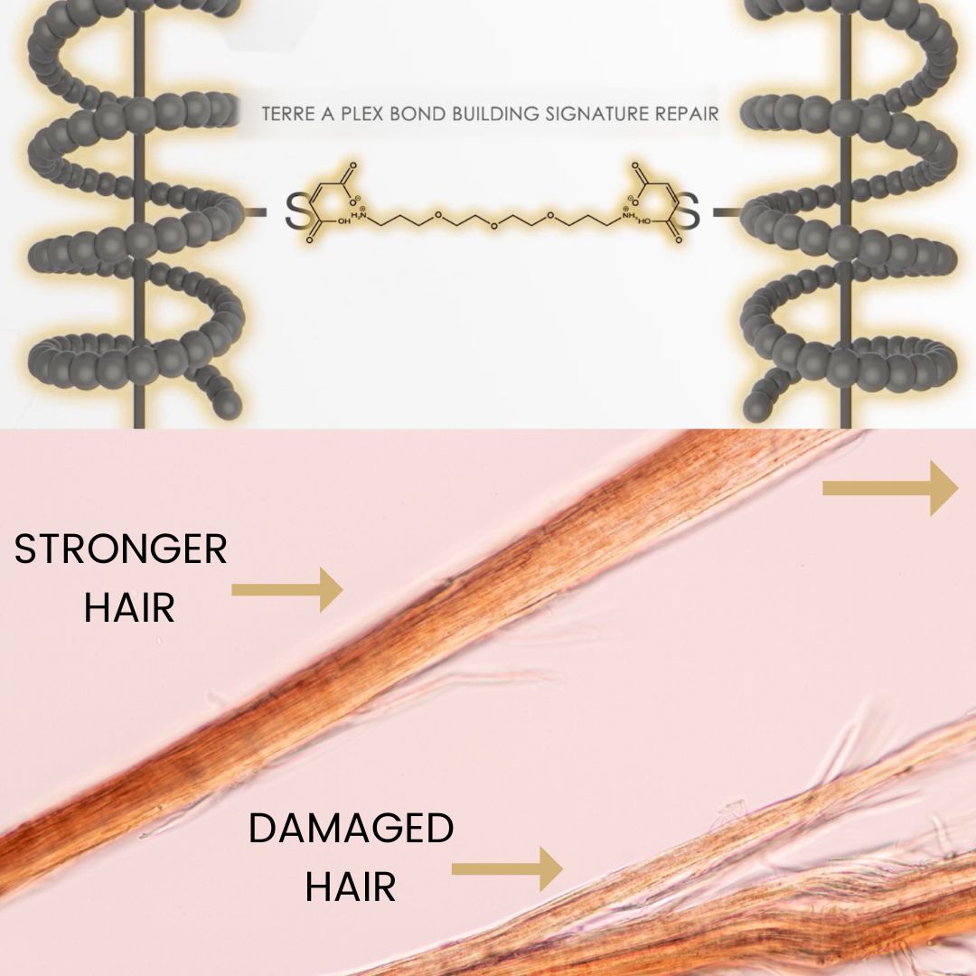 The Terre a Plex Repair is a professional grade salon treatment that is designed to fix your hair disulphide and chemical bonds to make your hair stronger from within.