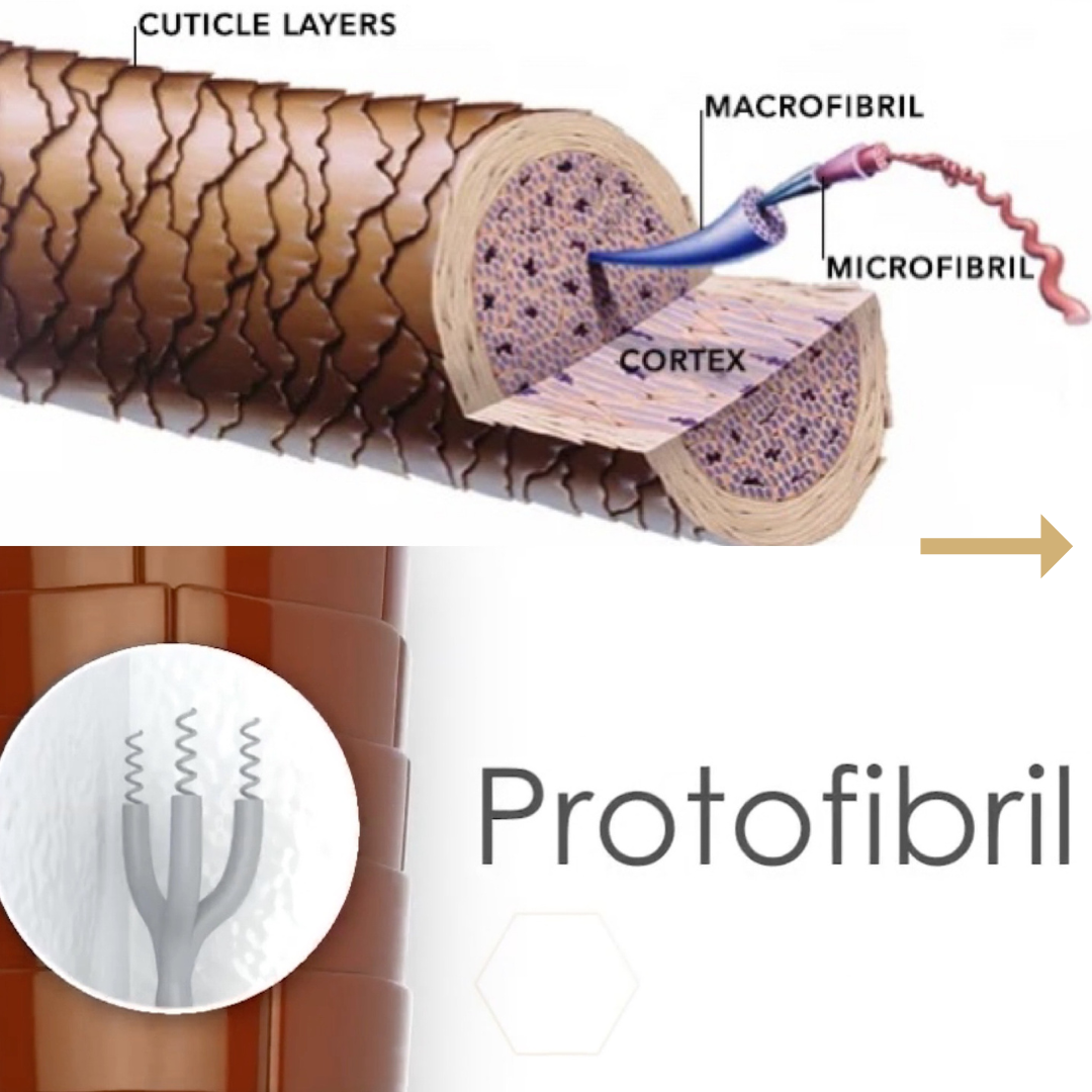 Plex straightening repairs the protofibril (covalent & disulphide bonds in the hair)